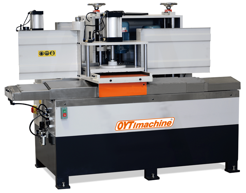 雙頭鋸是生產(chǎn)門窗幕墻時用的型材切割工具:1)OYT-五軸數(shù)控雙頭鋸:切割鋸的機(jī)臺轉(zhuǎn)動和鋸片傾斜,能實現(xiàn)各種復(fù)合角度的切割;工作臺擺角范圍22.5°~135°,鋸片擺角45°~90°,實現(xiàn)復(fù)合任意角度加工,可以滿足異形材料角度加工;配備600mm硬質(zhì)合金鋸片。2)OYT-重型雙頭鋸…